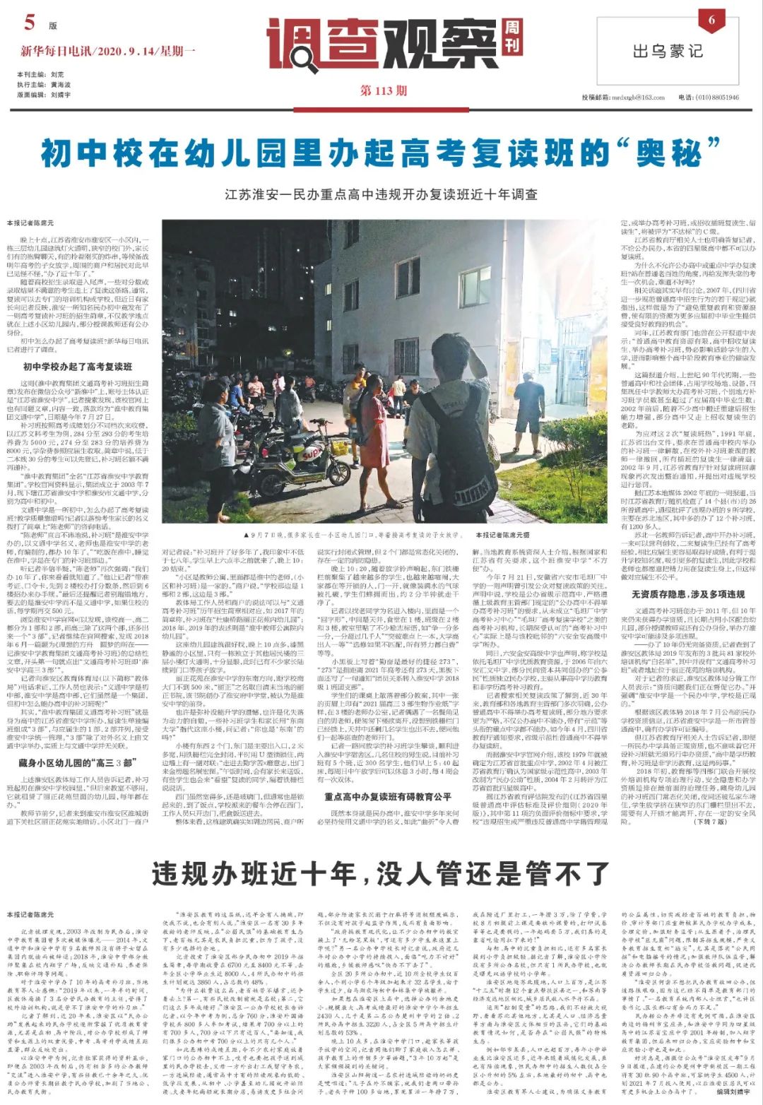 本文转载自微信公众号“新华每日电讯”(ID:xhmrdxwx),原文首发于2020年9月14日,原标题为《违规办复读班近十年,没人管还是管不了|电讯特稿》,原文首刊于“新华每日电讯”调查周刊。