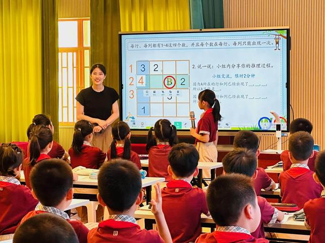 教研员在评课尾声的一句话,让她至今铭记:“把常规课上好,才能真正上好公开课。”那之后,她不再执着于“完美教案”,而是把精力放在琢磨每一节日常课上。“我开始在课堂上设计小游戏,比如让学生用数对猜同学位置,用肢体模仿图形平移,孩子们的眼睛亮了,课堂也活了。”